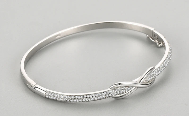 Der Armreif ist mit funkelnden Zirkonia-Steinen verziert, die für dezenten Glanz sorgen, ohne aufdringlich zu wirken. Das klassische Design macht ihn vielseitig kombinierbar – ob als stilvolles Accessoire im Alltag oder als elegantes Schmuckstück zu festlichen Anlässen.