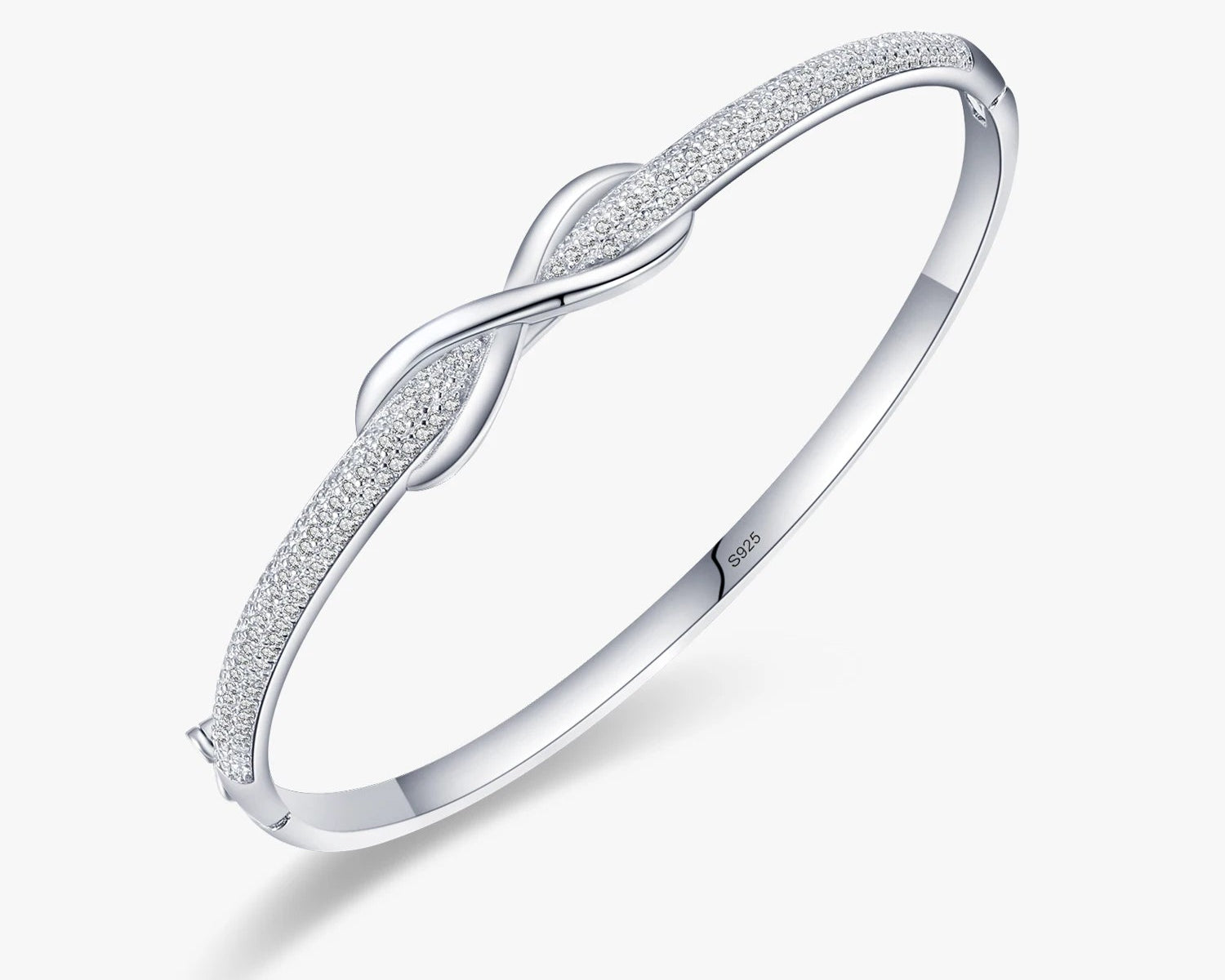 Dieser elegante Armreif aus hochwertigem 925 Sterling Silber überzeugt durch sein zeitloses Unendlichkeits-Design. Mit einem Gewicht von 9,2 g liegt er angenehm am Handgelenk und setzt ein klares Statement.