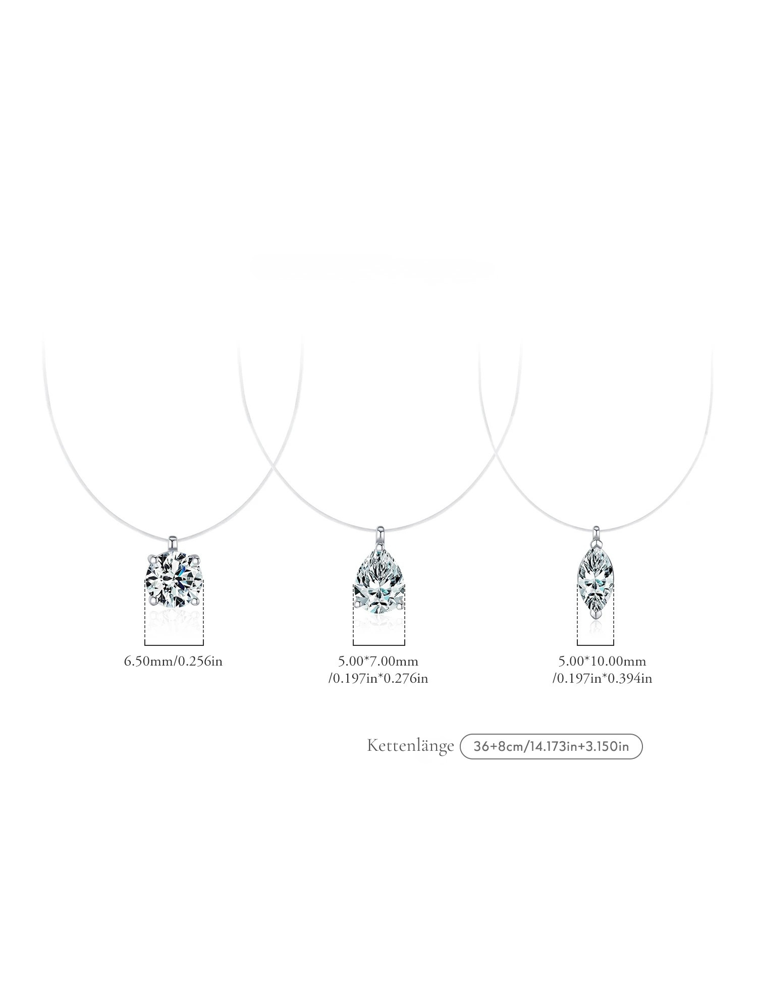 Die “Eternal Float” Moissanit-Schwebekette verbindet minimalistisches Design mit hochwertigem 925 Sterling Silber und einer Auswahl erstklassiger Moissanit-Schliffe. Durch die schwebende Fassung und die nahezu unsichtbare Mono-Filament-Kette, die optisch einer feinen Angelsehne ähnelt, wirkt der Anhänger, als würde er frei auf der Haut schweben. Dadurch entsteht ein sehr moderner, klarer Look mit starkem Lichteinfall und intensiver Brillanz. Mit nur 1,20 g ist die Kette außergewöhnlich leicht, angenehm zu tragen und eignet sich problemlos für den täglichen Gebrauch – viele Kundinnen legen sie gar nicht mehr ab.