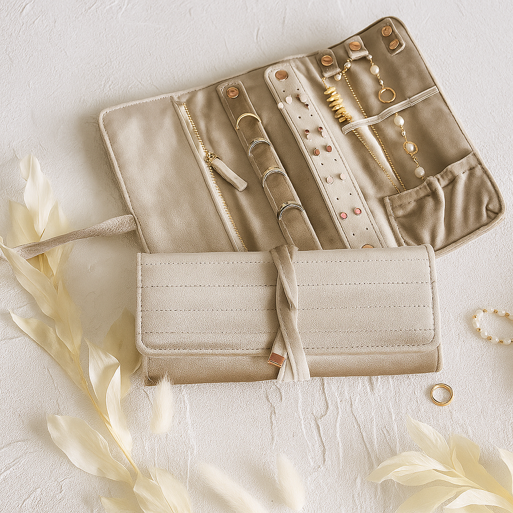 Erhältlich in verschiedenen eleganten Farben, vereint diese Schmucktasche praktische Funktionalität mit luxuriösem Design – ein Must-have für alle, die ihren Schmuck lieben und stilvoll aufbewahren möchten.