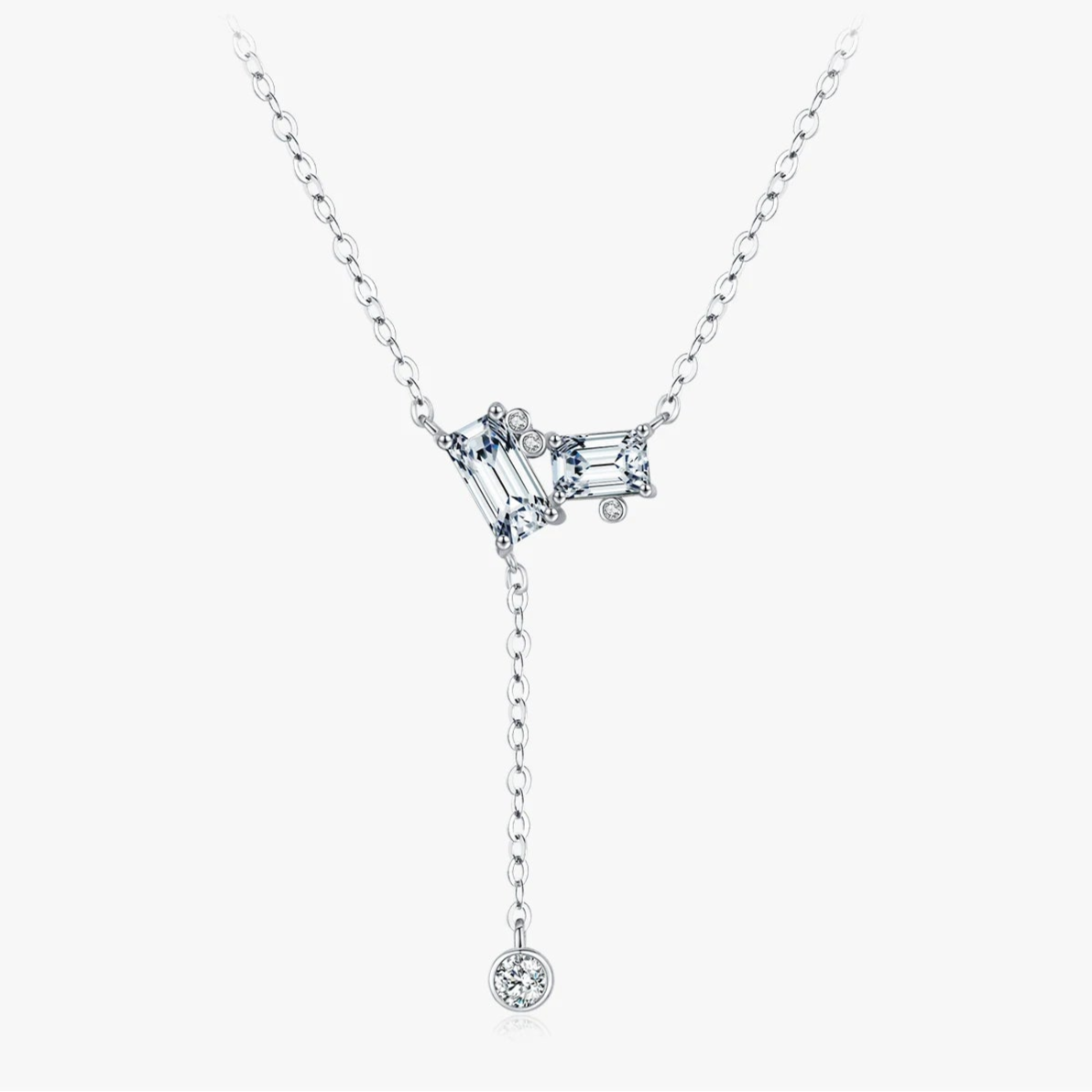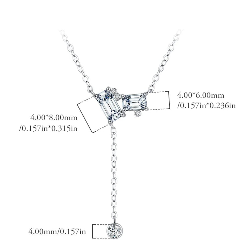 Ein elegantes Schmuckstück mit modernem Design: Die Halskette ist aus hochwertigem 925 Sterling Silber gefertigt und verziert mit rechteckig geschliffenen Zirkonia-Steinen (ca. 4 × 8 mm und 4 × 6 mm) sowie einem runden Kristallanhänger (ca. 4 mm). Mit einer Länge von 40 cm + 5 cm Verlängerung und einem Gewicht von ca. 3,05 g sitzt sie leicht und angenehm am Hals. Das Zusammenspiel klarer Linien und funkelnder Steine macht diese Kette zum idealen Begleiter für besondere Anlässe oder als stilvolles Highlight im Alltag.