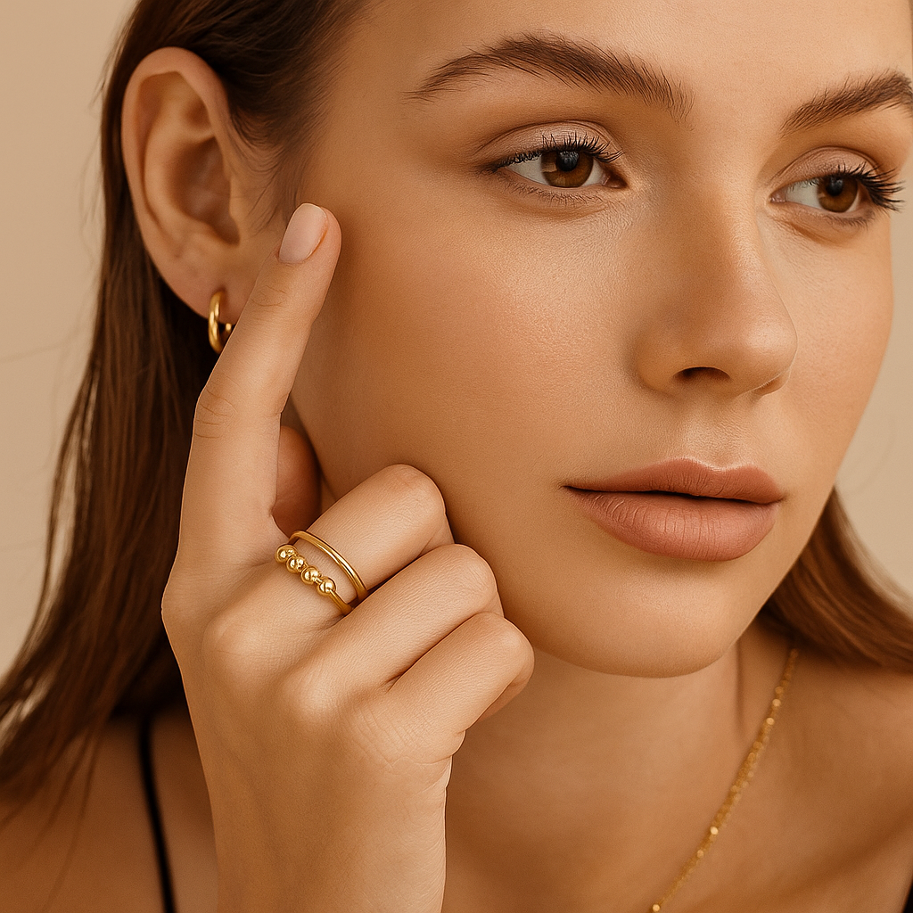 Dieser stilvolle Spiralenring aus Edelstahl, wahlweise mit 18K Vergoldung ist mehr als nur ein modisches Accessoire. Die drehbare Perlen-Spirale wirkt beruhigend und hilft gegen Nervosität oder Stress – ideal für Beruf, Schule oder Freizeit. Ein eleganter Zappelring für Frauen und Männer gleichermaßen.